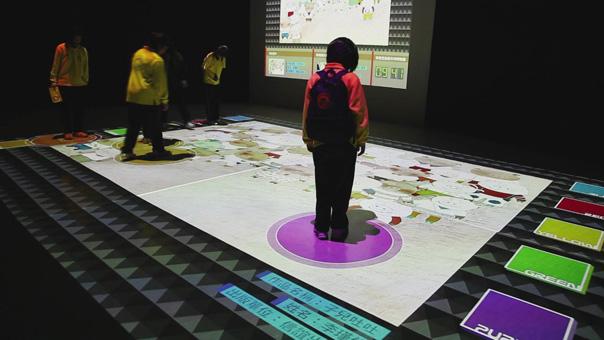 地面互動(dòng)投影系統(tǒng)采用懸掛在頂部的投影設(shè)備把影像效果投射到地面,當(dāng)參訪者走至投影區(qū)域時(shí),通過(guò)系統(tǒng)識(shí)別,參訪者可以直接使用雙腳或動(dòng)作與投影幕上的虛擬場(chǎng)景進(jìn)行交互,各種 ……