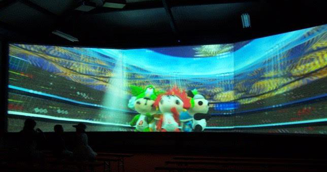 由多塊銀幕組成,通過(guò)多臺(tái)投影機(jī),采用投影融合技術(shù),創(chuàng)造出超大無(wú)縫的逼真畫(huà)面。利用電影自身特有的技術(shù)優(yōu)勢(shì),使觀眾在高質(zhì)量的聲畫(huà)環(huán)境包圍之中,產(chǎn)生身臨其境的強(qiáng)烈的現(xiàn)場(chǎng) ……